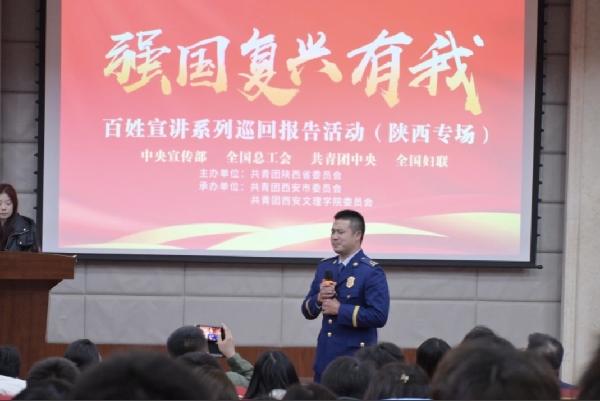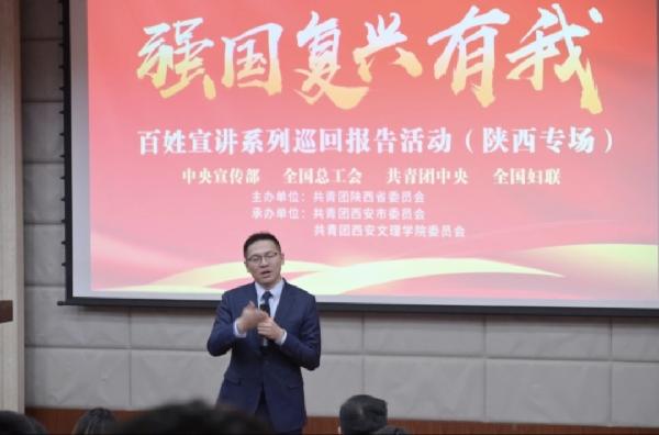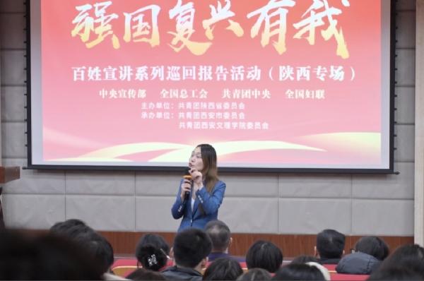 12月25日,在团中央宣传部、全国总工会、共青团中央、全国妇联的指导下,由共青团陕西省委主办,共青团西安市委和共青团江南官方注册委员会共同承办的“强国复兴有我”百姓宣讲(陕西专场)在我校图书馆报告厅成功举办。