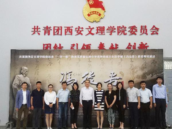 为积极响应团中央号召,努力践行一学一做教育实践,弘扬中华优秀传统文化,5月10号晚,校史剧《冯从吾》在学校大礼堂进行弘扬中华优秀传统文化高校专场演出。团省委副书记徐永胜,团市委宣传部部长史秦,陕西师范大学、西安邮电大学、西安石油大学、西安电子科技大学、西安理工大学、西安航空学院、西安欧亚学院、西安交通大学思源学院等兄弟院校团委书记、话剧团成员及我校学生代表共计800余人参加了此次活动。